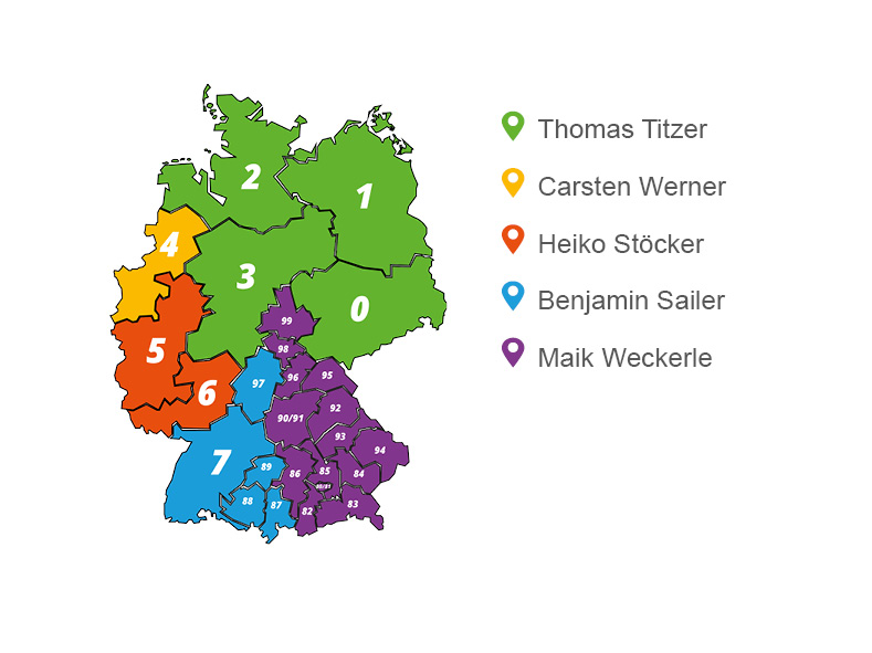 PLZ Gebiet: 80-86, 90-96, 98 und 99